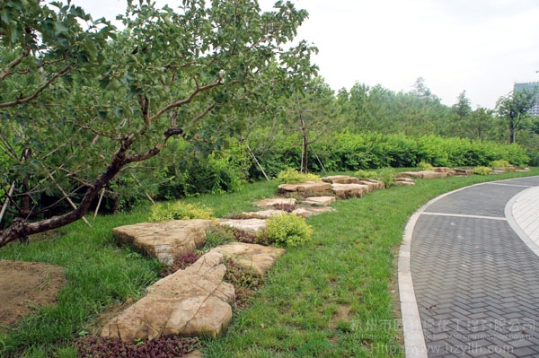 山东寿光市东环路东侧绿化改造工程(圣城街-北环路)面积9万平方米,施工范围为机动车道与非机动车道之间2.5米的隔离绿化带和30多米宽的路侧绿化带,施工内容包括土方地形整理、绿化种植、园路铺装、景石摆放、景观小品营建等。2009年9月开工,2010年7月竣工。经过2年的精心养护,如今,这里树木葱郁,花草繁茂,一路走来,随着多种风格的园路在脚下延伸,风景也在眼前不断变化。