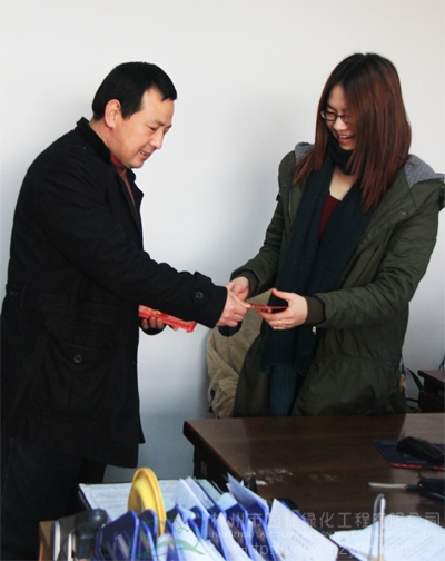 常务副总李寿仁向员工拜年并发放红包