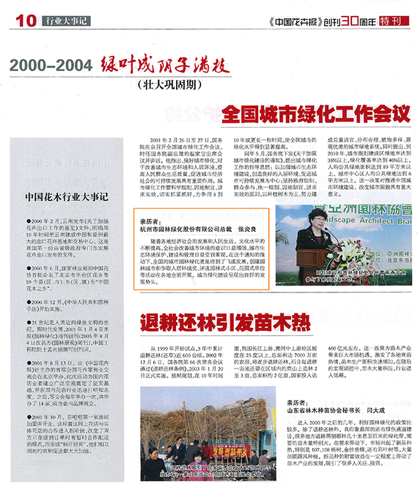 【中国花卉报】创刊三十周年特刊之2000-2004 全国城市绿化工作会作