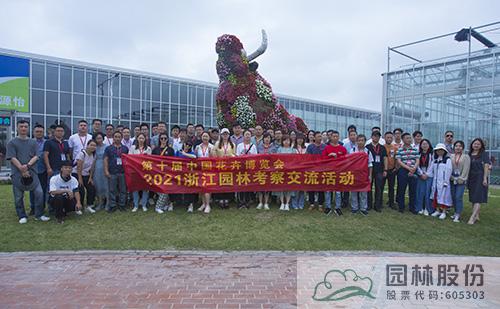 6月8日,由浙江省风景园林学会园林工程分会、浙江省花卉协会绿化苗木分会、杭州市花卉行业协会、杭州市风景园林学会园林工程专业委员会四家单位联合主办,完美在线手机版(大中国区)和浙江绿龙生态科技有限公司联合承办的2021浙江园林上海考察交流活动的第二站,来到崇明智慧生态花卉园。