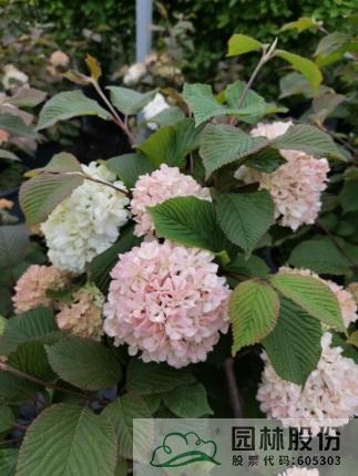 忍冬科荚蒾属,落叶灌木,国内从日本引进,株高可达2.5-3m。新叶成暗红色,后期会慢慢褪去,呈绿色。整个花序都是不育花,球形,花苞粉绿色,开放后淡粉色,最后变成白色。花期4月初到5月初。秋天的树叶颜色多变,像油画调色板一样绚丽多彩。它适应我国大部份地区种植,病虫害较少。冬季至早春可修剪。一年施肥3次,早春萌芽前,花后及秋季。适合园艺盆栽或庭院观赏。