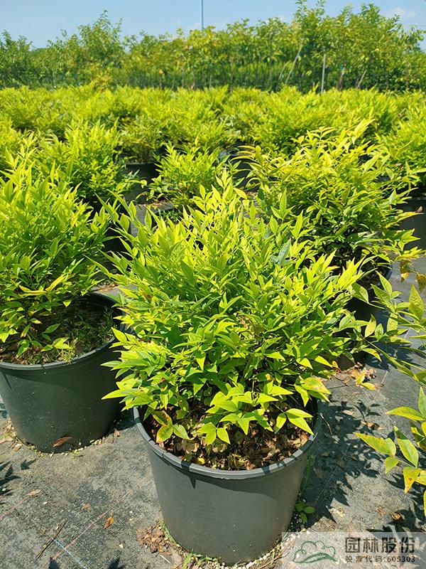 相较于其他南天竹品种,柠檬黄南天竹是少见的金黄色系品种,四季均能保持一个相当亮眼的状态。低矮饱满的冠型与密集斜展的金叶,明显区别于其他金色系植物品种。