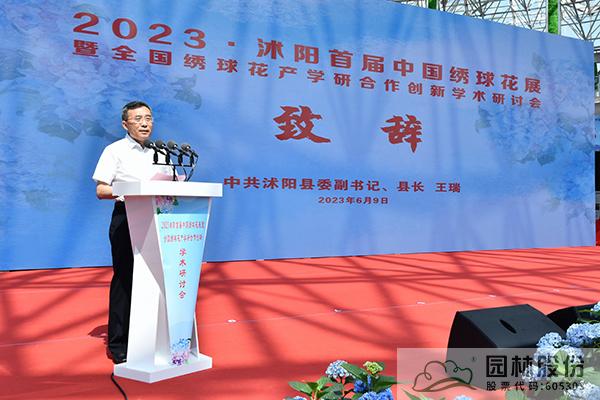 王瑞在致辞中代表沭阳县委、县政府及200万花乡人民,向参加开幕式的各位领导、各位嘉宾表示热烈的欢迎和衷心的感谢,并简要介绍了沭阳经济社会及绣球花产业发展。希望共同打造具有广泛影响力、引领全国花卉行业发展的交易盛会,进一步擦亮沭阳“中国花谷”的彩色名片,奋力谱写中国花木产业高质量发展新篇章。