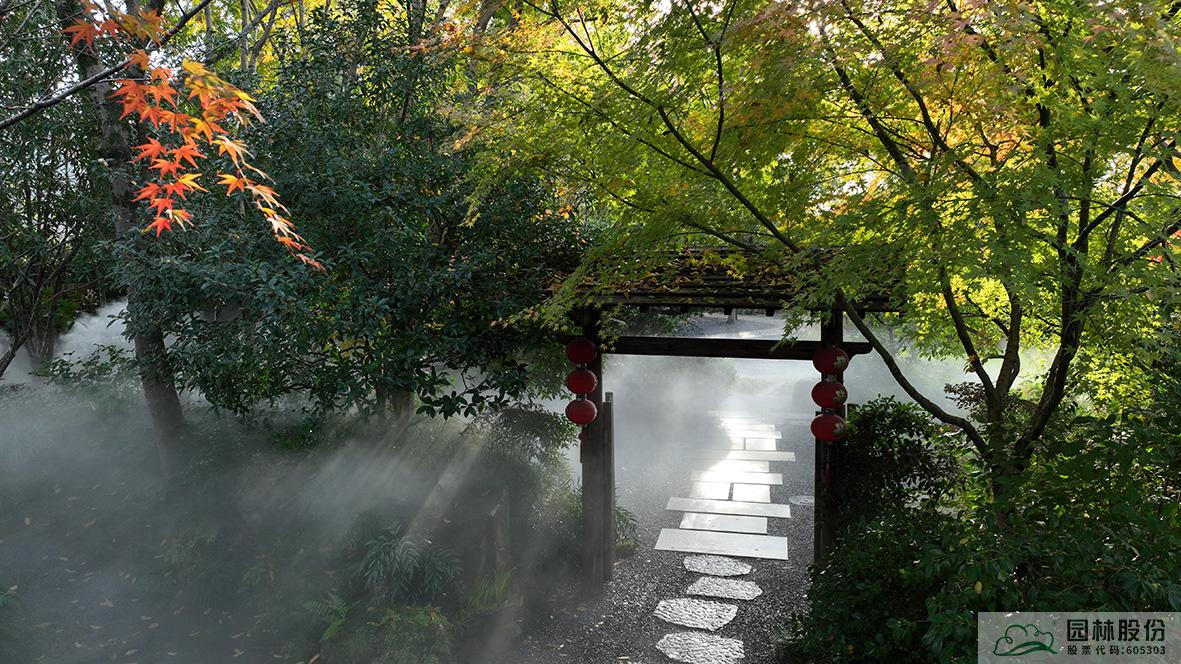 中式庭院中,红枫在空间转换中起到自然过渡作用