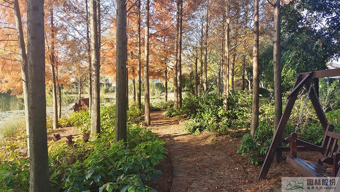 在初冬的日子里,怎能少了水杉、池杉、水松这类落叶针叶树呢。远看,褐色的枝叶、竖向的线条,满满的都是初冬的静谧。如果在林下的园路穿梭,还能看到细细密密的落叶洒满林间,丝丝缕缕的阳光洒落进来,好希望时间一直停留在这一刻。