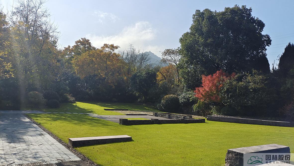 俯视画境园南园,枫香林在阳光中的色彩愈加斑驳,无患子绿色尚未全部褪去,金黄色树冠愈加油亮,尽显英式风景林的自然、洒脱。