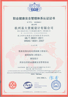 职业健康安全管理体系认证证书